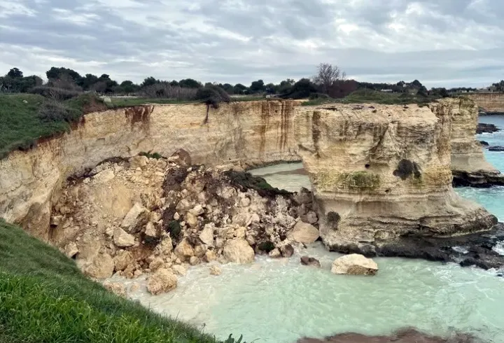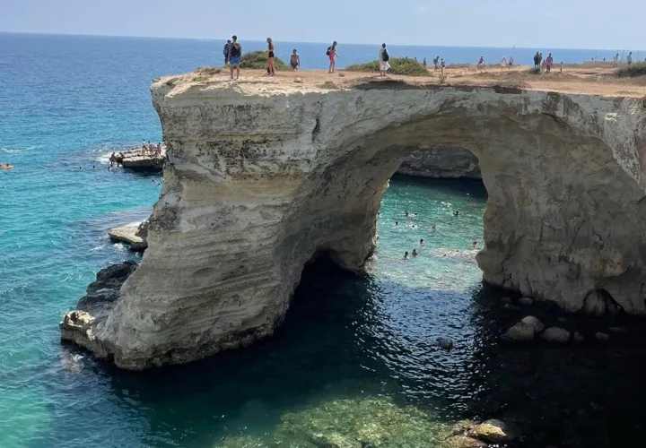 Речь о скальной арке у морских скал Сант-Андреа недалеко от города Мелендуньо в регионе Апулия. Место десятилетиями было магнитом для туристов. Фото, кольца, признания — всё по классике.